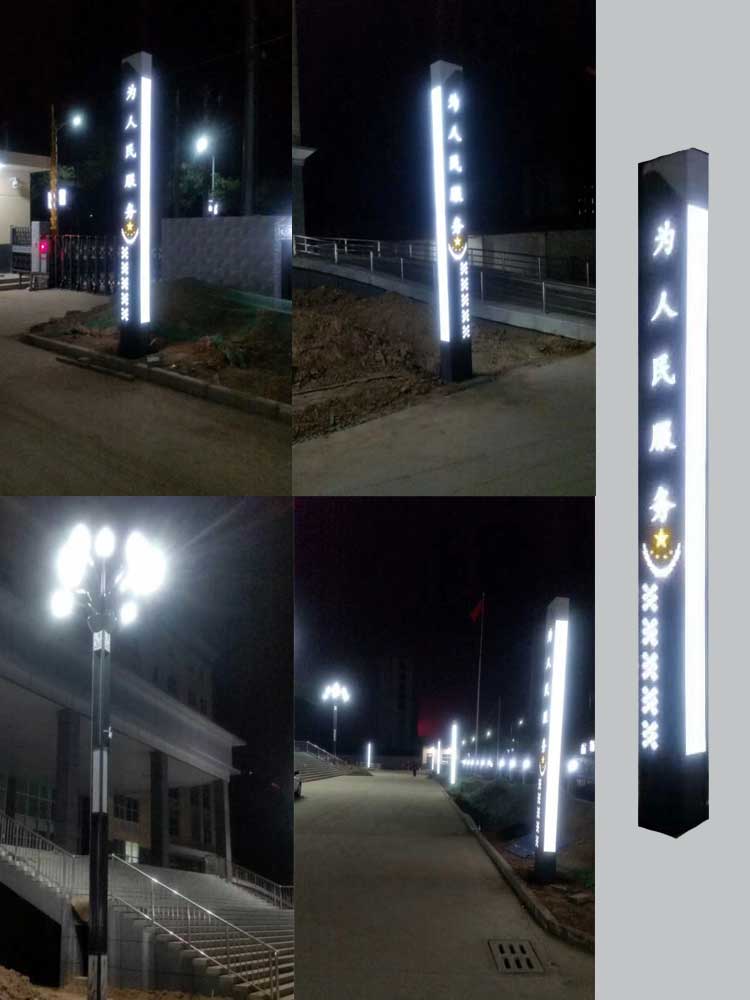 該項目是的燈具外觀造型,統一由我公司設計師設計完成,結合公安局特色,設計出適合的燈具造型,在燈具上設計有“為人民服務”字樣,還有加了5個五角星。外部采用激光切割技術,將整體的造型雕刻出來,內部安裝亞克力白板嵌套而成。