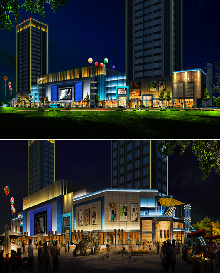 簡介—— 正上新世界商業樓亮化工程項目我們蘭光戶外設計采用一個靜態的表現方式來進行簡單的處理,樓體主要采用的黃色的輪廓燈來進行簡單的勾勒,這樣做的好處是能讓人在晚上清楚的看到這棟樓的建筑結構,簡單大方,同時可以達到節能減排的效果,不會造成資源的浪費。通過對其所處的地理環境及建筑特征進行分析,較終采用了金黃色輪廓照明,使人無論身處