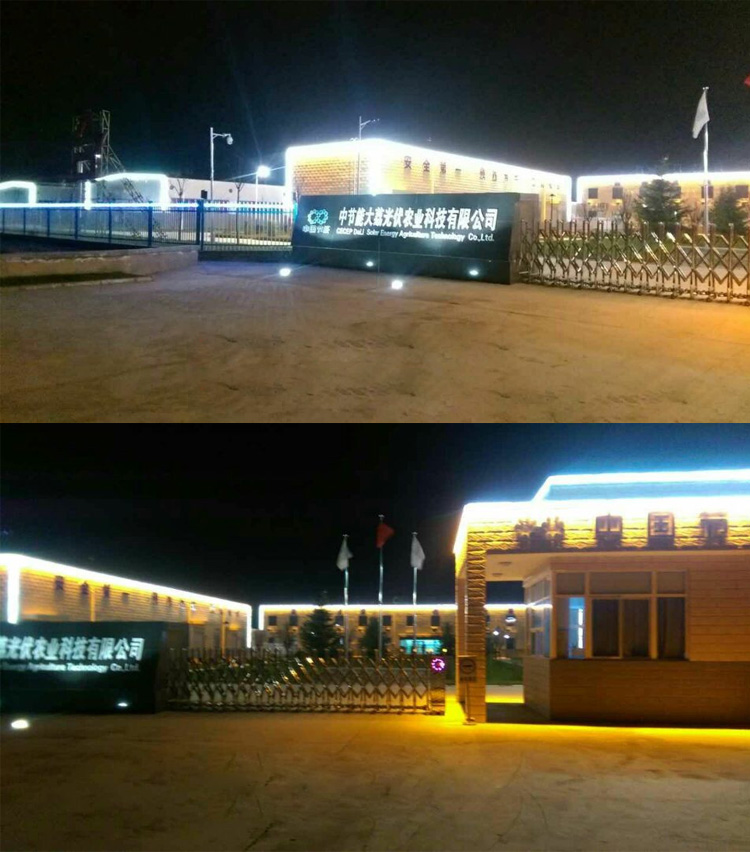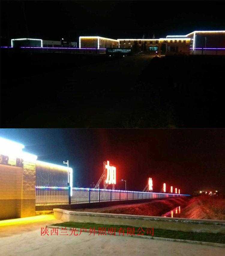 簡(jiǎn)介—— 中節(jié)能大荔光伏農(nóng)業(yè)科技有限公司廠區(qū)亮化項(xiàng)目,是我們陜西蘭光照明2015年承接的亮化工程。公司設(shè)計(jì)師根據(jù)廠家要求簡(jiǎn)單實(shí)用的特點(diǎn),整個(gè)廠區(qū)的設(shè)計(jì)全部采用線條燈和輪廓燈,將整個(gè)廠區(qū)的廠房、大門、廠區(qū)道路、辦公樓以輪廓勾勒的形式展現(xiàn)出來,照亮整個(gè)廠區(qū),達(dá)到客戶廠區(qū)樓宇亮化需求。