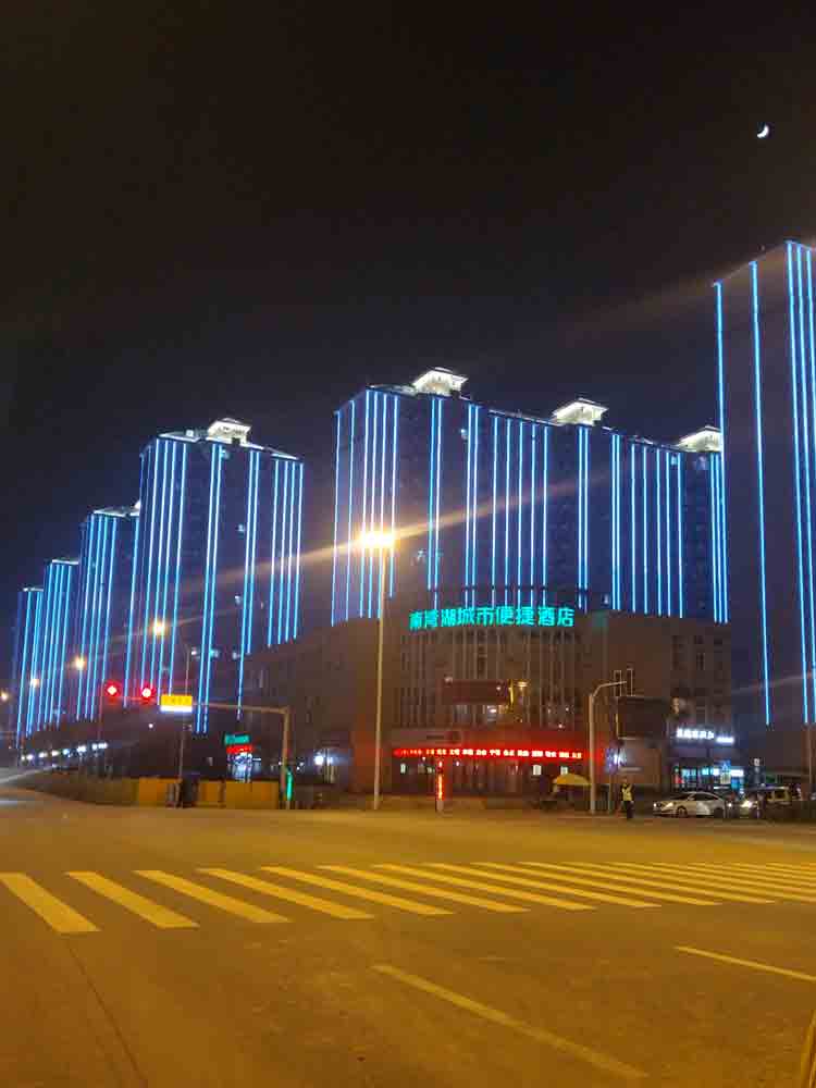 簡(jiǎn)介—— 學(xué)校坐落于武漢經(jīng)濟(jì)技術(shù)開(kāi)發(fā)區(qū)后官湖畔,校園占地面積約67萬(wàn)平方米,校舍建筑面積約33萬(wàn)平方米。我公司根據(jù)項(xiàng)目的特殊性,對(duì)亮化的的效果以簡(jiǎn)潔大方為主,設(shè)計(jì)樓體采用的是線條燈輪廓勾勒,頂層打亮的效果,達(dá)到學(xué)校的滿意的效果反應(yīng)。