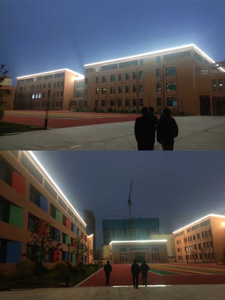 西安市兒童福利院亮化工程,主要是采用線條燈對樓體的頂部和側(cè)面輪廓進行勾勒,主樓安裝十二生肖發(fā)光造型,側(cè)墻采用圖案燈進行動畫投影,打出絢麗多彩的動畫卡通人物,與建筑的實用完整結(jié)合。