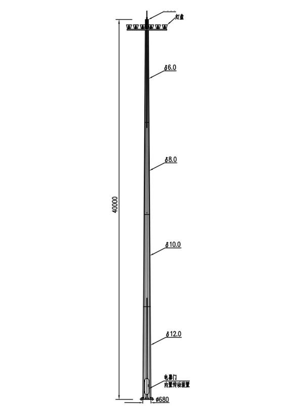 3.高桿燈頂部配設避雷針,所有連接部件為不銹鋼螺栓負載能力1000公斤。